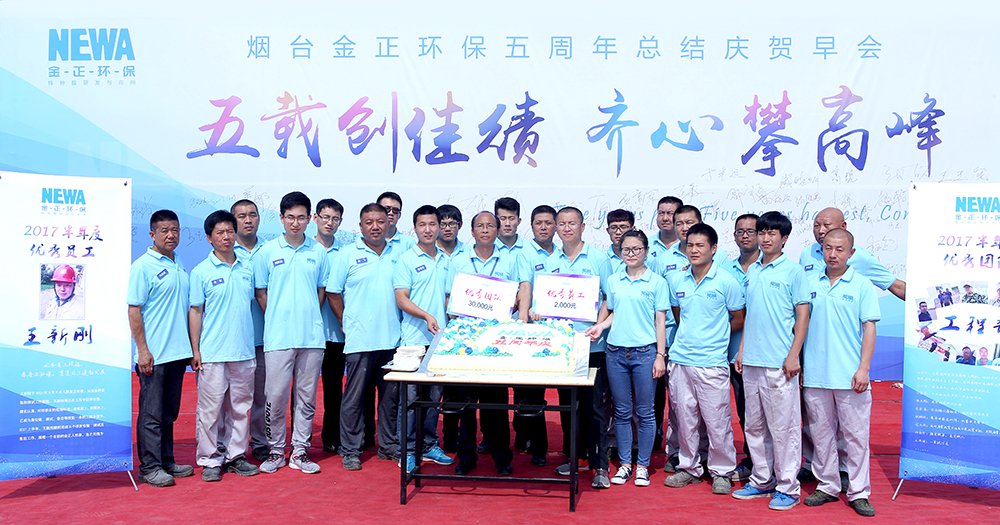 2017年7月5日,是金正環(huán)保五周歲的生日,金正環(huán)保全體員工舉辦了簡單而隆重的五周年總結慶賀早會。