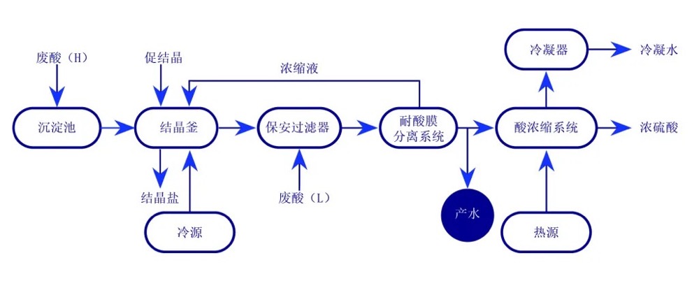 為實現(xiàn)酸性廢水資源化利用,降低酸性廢水處理過程中危險廢棄物產(chǎn)生量,減輕企業(yè)環(huán)保壓力和廢棄物處置費用。煙臺金正環(huán)保以技術(shù)創(chuàng)新為驅(qū)動,充分發(fā)揮產(chǎn)學(xué)研協(xié)同創(chuàng)新機制,成立研發(fā)團隊,并聯(lián)合知名專家牛青山博士,開發(fā)了耐酸膜材料,并在耐酸膜組件、酸性廢水處理工藝及系統(tǒng)中深入研究與實踐,為不同酸性廢水、廢酸的綜合治理提供了切實可行的解決方案,改變了傳統(tǒng)技術(shù)中和法酸性廢水粗放型處理的弊端,實現(xiàn)了酸和鹽資源的雙重回收利用。