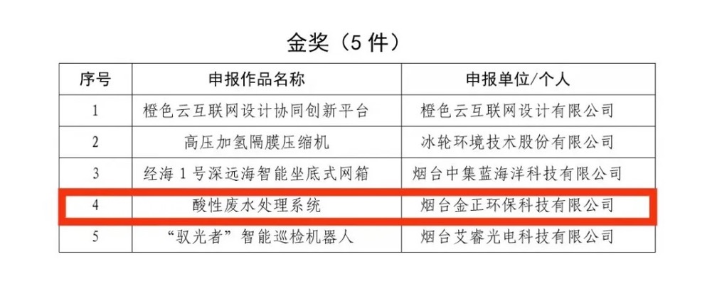 近日,經(jīng)過初評、終審、公示等環(huán)節(jié),煙臺金正環(huán)保參賽作品《酸性廢水處理系統(tǒng)》榮獲煙臺市第三屆“市長杯”工業(yè)設(shè)計大賽金獎。