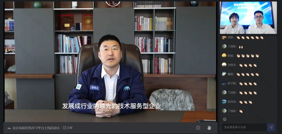 為持續(xù)做好疫情防控工作,避免人員聚集,“金正環(huán)保在線學習平臺”啟動會以線上直播形式進行,煙臺金正環(huán)保總經(jīng)理李越彪線上致辭。