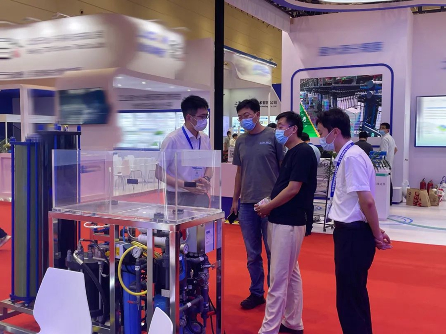 本次展會(huì)展出的專利膜組件-100barDTRO膜組件、CDRO膜組件、小型海水淡化設(shè)備等水處理設(shè)備受到與會(huì)人員的高度關(guān)注,在場(chǎng)的工作人員與來(lái)訪客戶在產(chǎn)品技術(shù)亮點(diǎn)、解決方案成本優(yōu)勢(shì)、合作意向等諸多方面一一進(jìn)行了深入的溝通和交流。